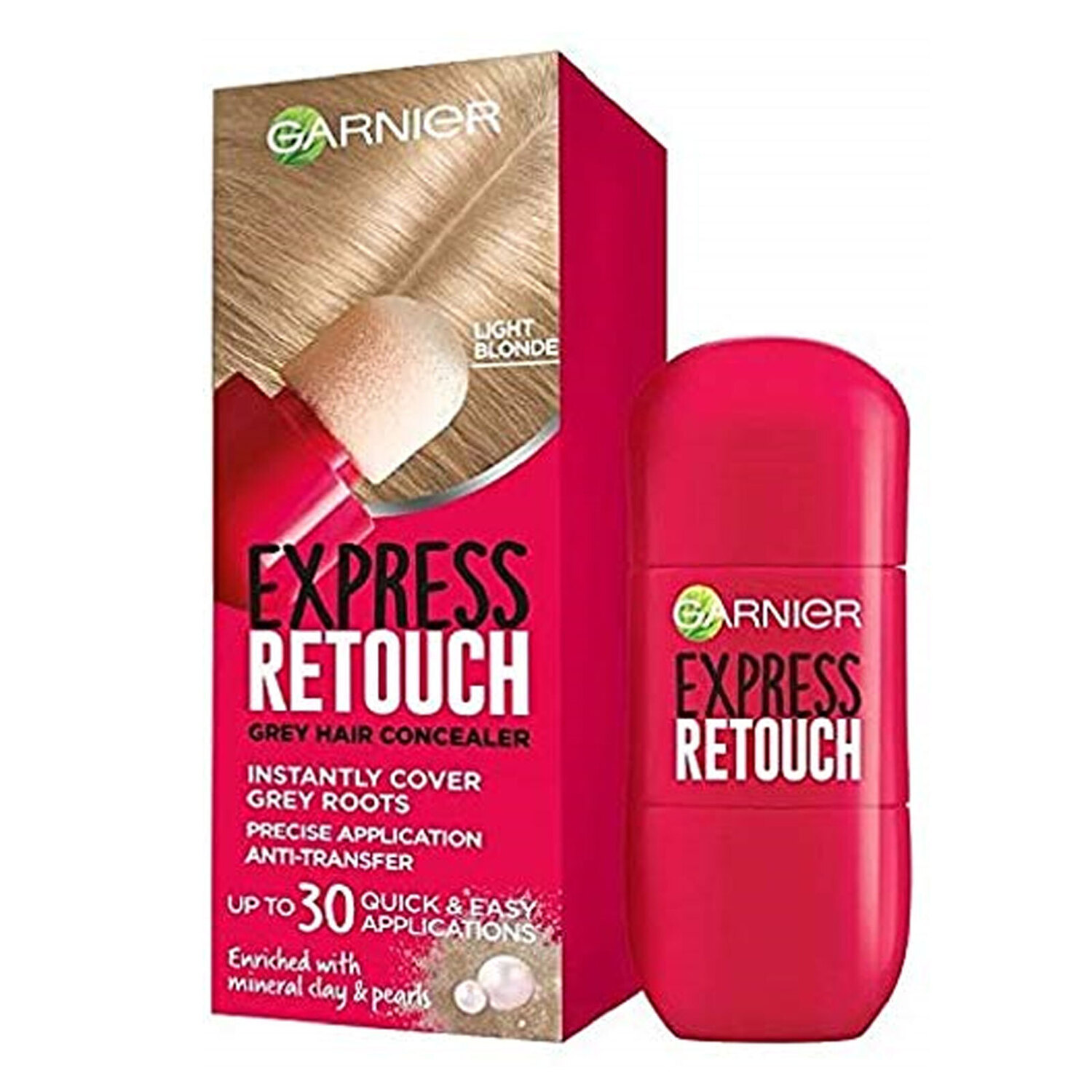 Garnier Express Retouch Root Concealer Light Blonde Hair 10ml. Shade 8.0 Light Blonde. Instantly Cover Grey Roots. Precise application. Anti-transfer technology. Natural Hair Colour Result.