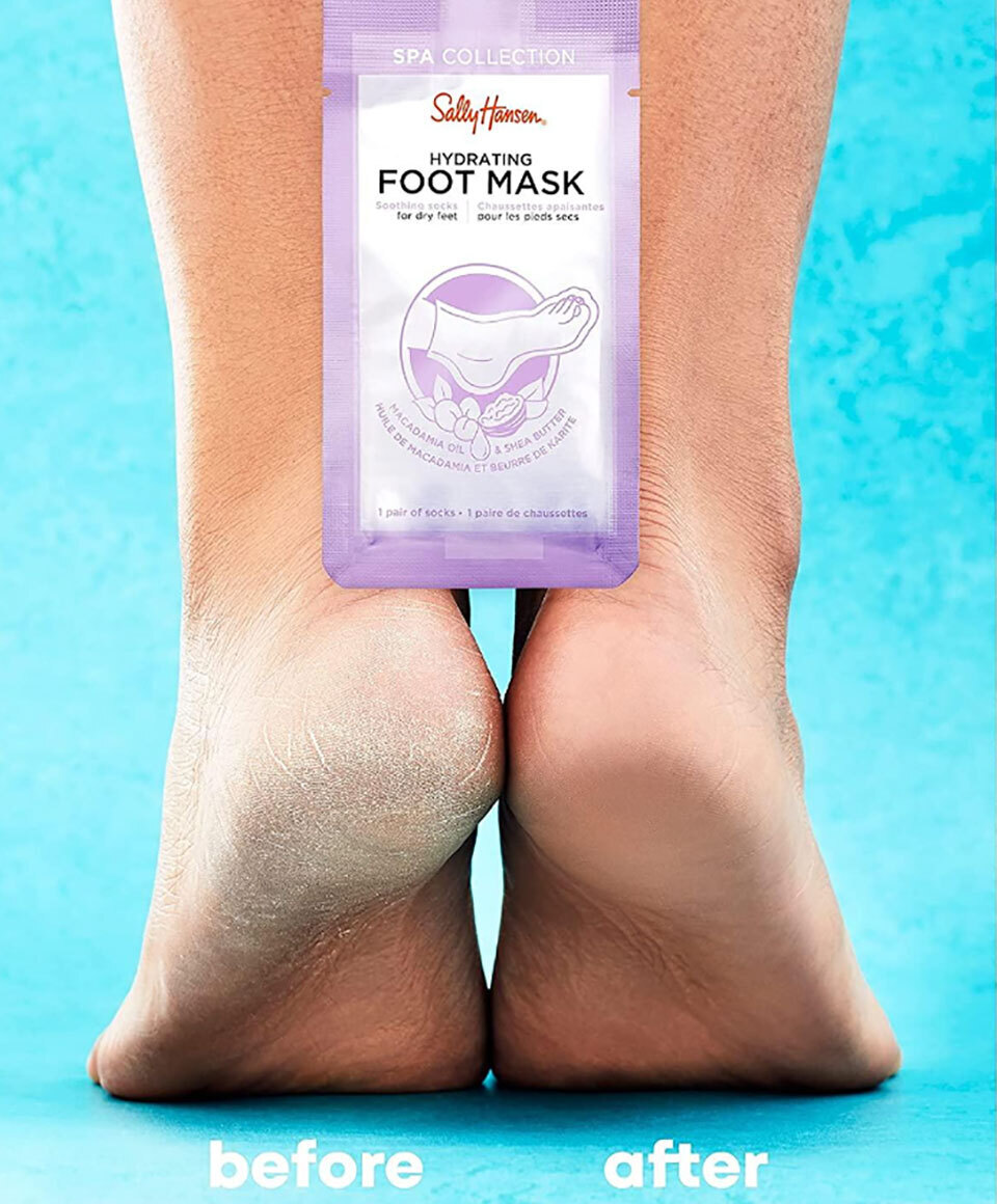 An easy to use foot mask designed for severely dry skin. Infused with vitamins and nut butters, our single use socks are transformative, providing a luxurious spa like experience. Rich formula with Vitamin E, Macadamia, and Shea Butter, instantly relieves dry feet. Feet appear softer, smoother, and feel more hydrated after one use.